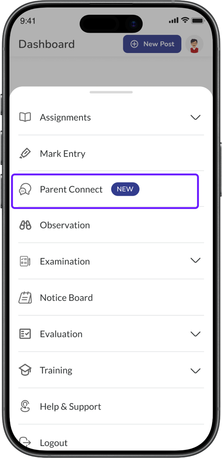 Go to: More → Parent Connect