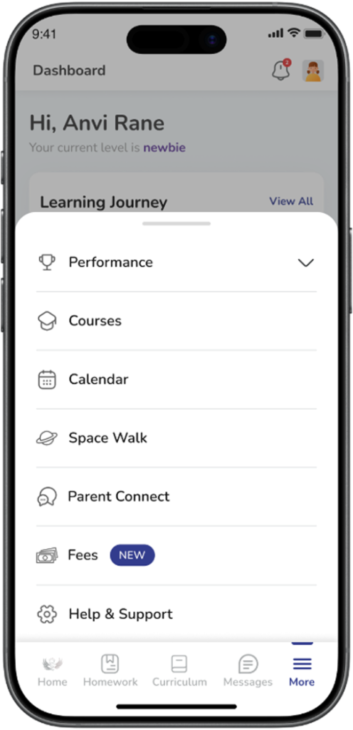 If a parent has more than one child linked to their account, the app will show multiple student names.