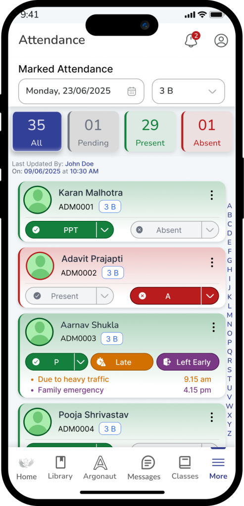 This depends on your school’s configuration. In the Settings menu, you can define if “Late” counts as a full day of presence, a half-day, or simply as “Present with Remarks.”