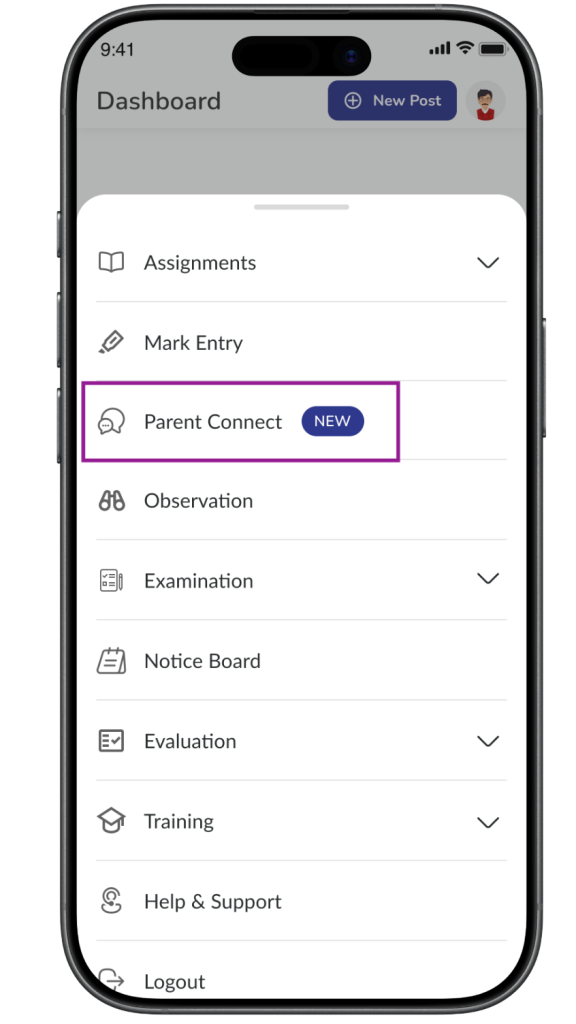 Tap Parent Connect from the menu.