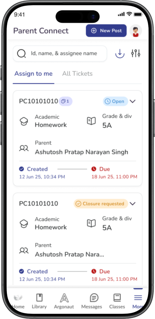 By default, Parent Connect opens on the Assign to me tab.