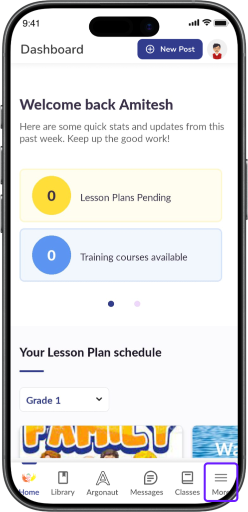 Log in to the LMS app using your staff credentials.